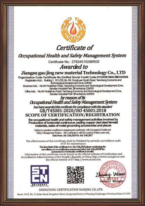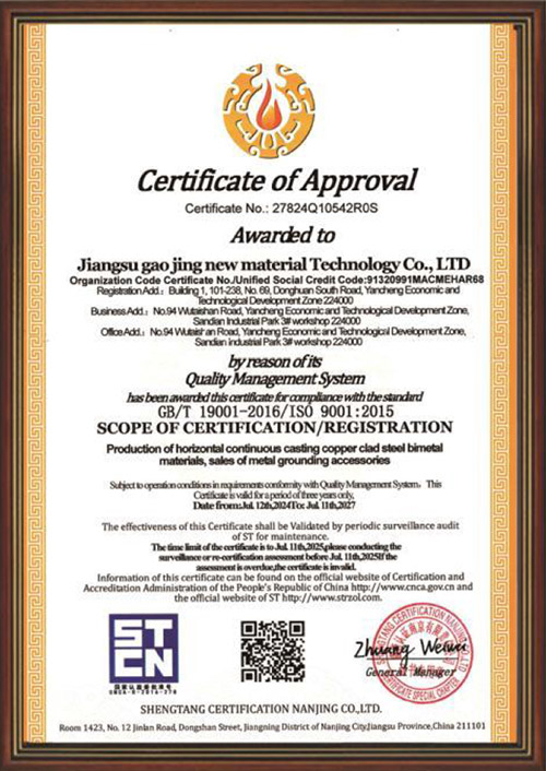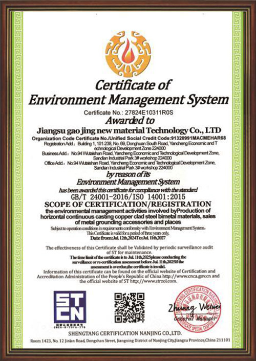 Jiangsu Gaojing New Material Technology Co., Ltd. is located in the beautiful city of Yancheng, with a factory area of 10000 square meters. It is a high-tech enterprise that integrates research and development, production, design, construction, and lightning protection grounding device testing services for grounding material technology.
