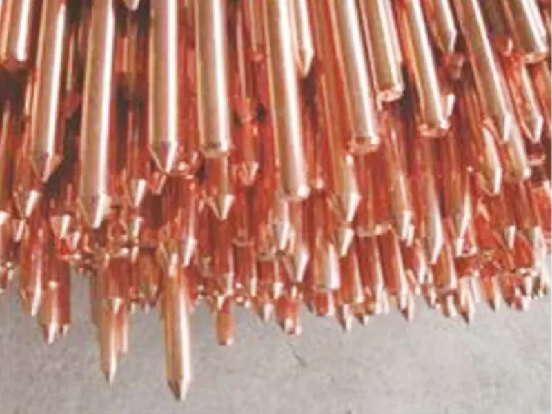 Copper-clad steel grounding rods are manufactured by our company using a horizontal continuous casting process to uniformly coat a low-carbon steel core with 99.9% pure copper, ensuring complete molecular bonding between the copper and the steel core.